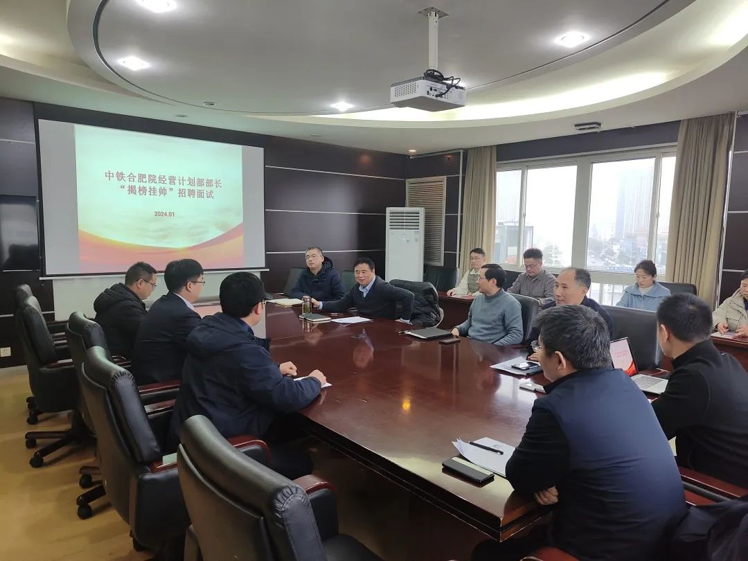 2024年1月18日,中鐵六院集團(tuán)合肥院于五樓會(huì)議室開(kāi)展經(jīng)營(yíng)計(jì)劃部部長(zhǎng)“揭榜掛帥”招聘面試會(huì)。院黨委書(shū)記、執(zhí)行董事王智忠,黨委副書(shū)記、總經(jīng)理霍建軍等領(lǐng)導(dǎo)班子成員出席面試會(huì)。
