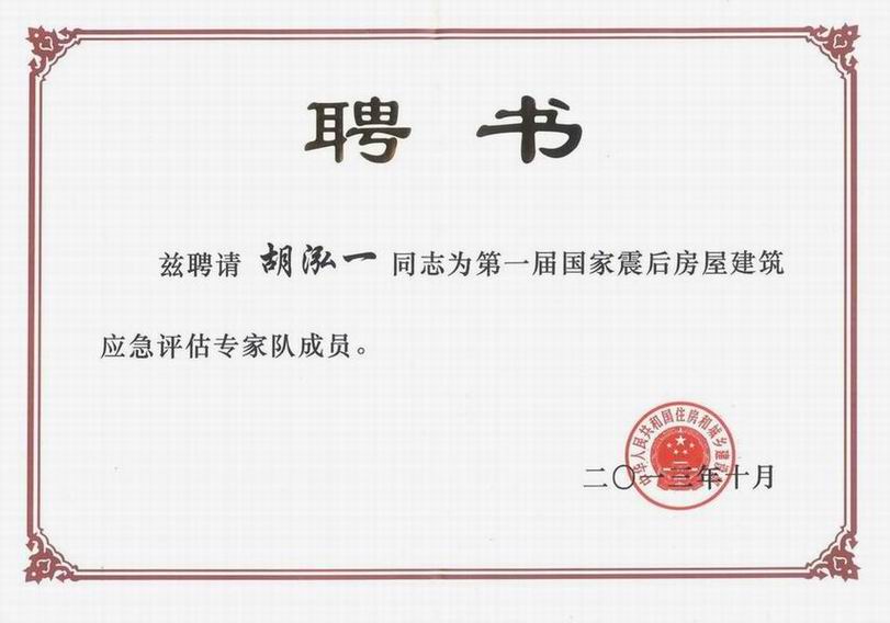 近日,從住房和城鄉(xiāng)建設(shè)部喜悉,我院總工程師胡泓一同志被住建部聘請為國家震后房屋建筑應(yīng)急評估專家隊(duì)成員。
