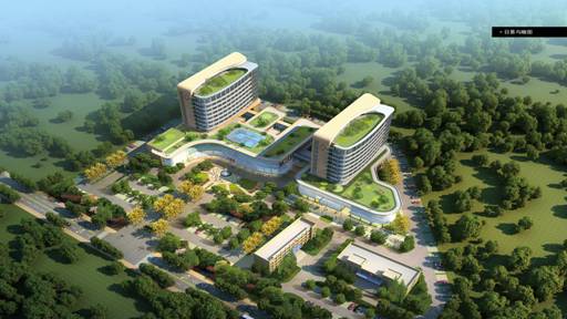 在方案設計上,該項目造型力求簡潔、大方、新穎,整個建筑具有現(xiàn)代化醫(yī)院的特色。建筑整體色彩以素色為主,并在此基礎上配以淺色色調,既體現(xiàn)了醫(yī)院建筑潔凈、安寧的特性,又給患者營造了一種溫暖和被關懷的感受。建筑室內結合生態(tài)醫(yī)院的主題,設計從心理角度出發(fā),室內運用幾何圖塊、色彩拼裝等手法,賦予醫(yī)院以綠色生命力和清新典雅的元素。