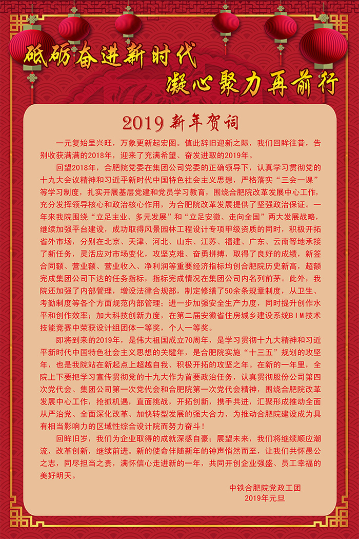 砥礪奮進新時代,凝心聚力再前行--2019新年賀詞
