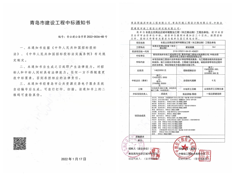 長昆立交周邊區(qū)域環(huán)境整治工程(長江路以南)工程總承包項目位于青島市西海岸新區(qū),由中鐵合肥建筑市政工程設計研究院有限公司、青島西海岸市政工程有限公司、青島環(huán)境工程設計院有限公司聯(lián)合體方式中標。項目投資約1.48億元,面積約31500㎡。該項目包括景觀綠化、河道治理、道路整治工程,作為青島長昆立交橋周邊區(qū)域綜合整治工程的配套工程之一,將有效改善周邊交通環(huán)境,助力打造“潔序凈美”的市容環(huán)境,提高沿線居民幸福感。